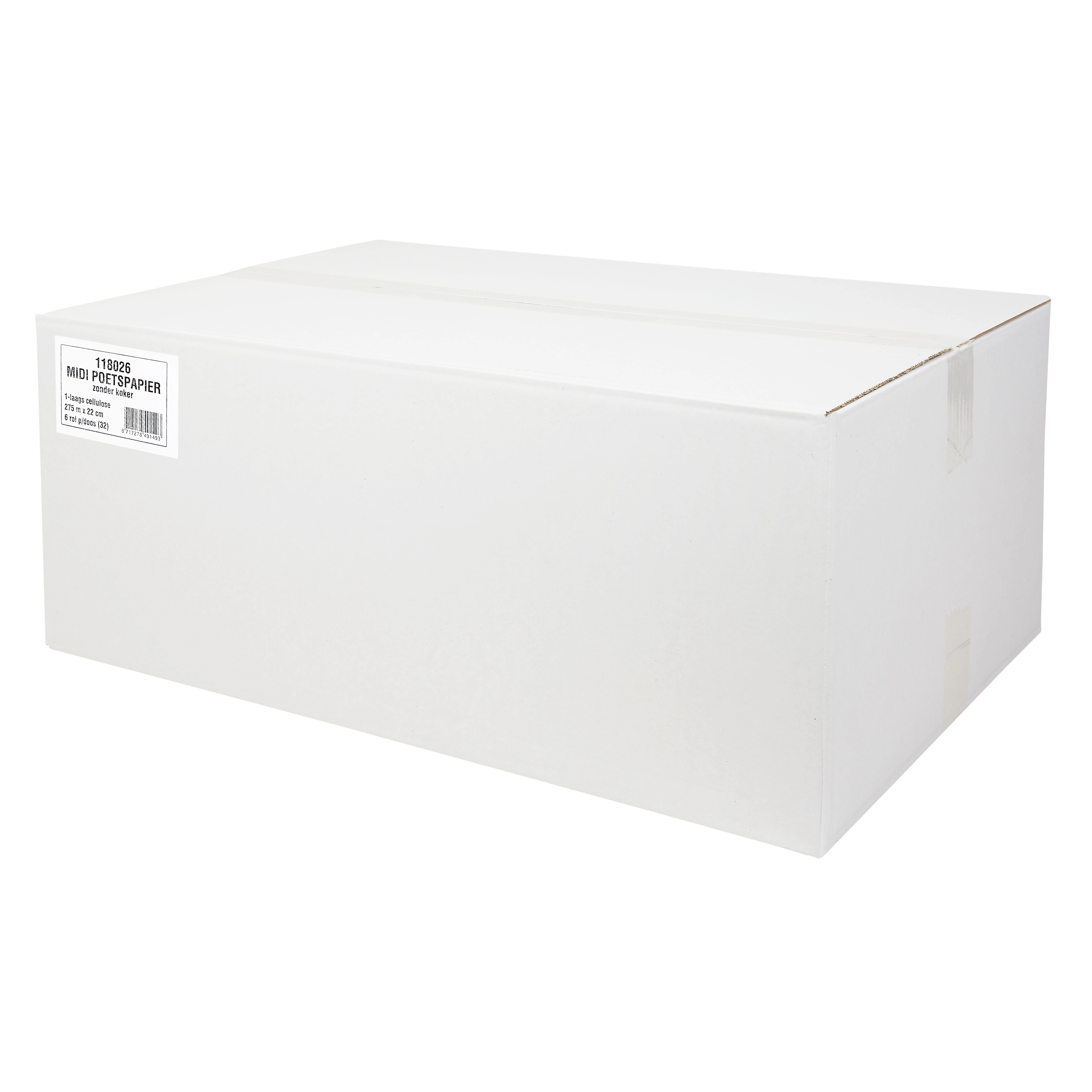 Midi-Rolle, 1-lagiger Zellstoff Weiß, 6 x 275 m. Die Rolle ist 22 cm breit. Dieses sehr weiche Papier weist eine hohe Saugfähigkeit auf, da es aus Zellstofffasern hergestellt ist. Diese Eigenschaften machen dieses Papier überaus geeignet für den Einsatz in der Kantine oder Küche.